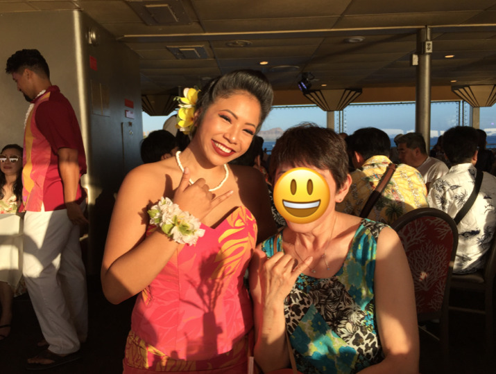 ハワイに到着してから申し込んだ、オプションツアーだよ。ディナーのコースが4つあって、ビュッフェコース(99ドル)、カジュアルコース(115ドル)、デラックスコース(151ドル)、ラグジュアリーコース(201ドル)の中からデラックスコースを選んだよ。ワイキキから送迎があって、船に乗り込む前にはバンドの演奏があったね。