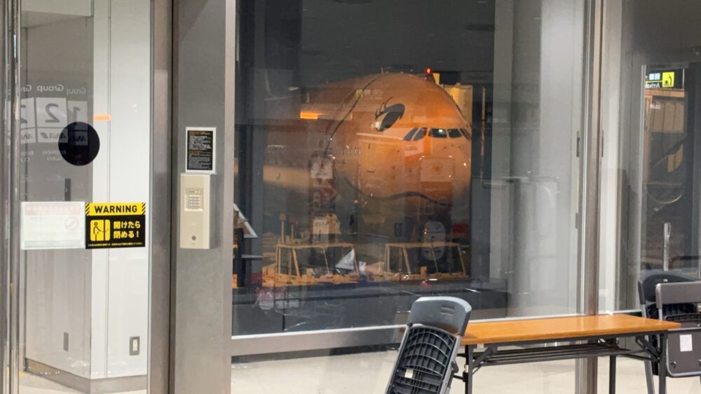 搭乗時間が近づいたので搭乗口に向かうと、待っていたのは今年から就航したオレンジのフライングホヌのラーでした。これで、ラニ、カイと合わせて、3機制覇したことになります。